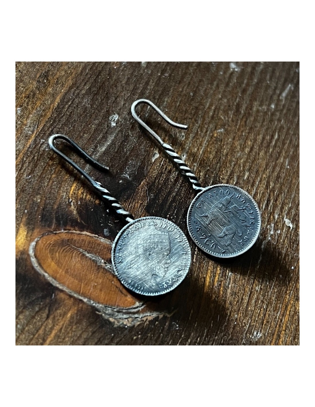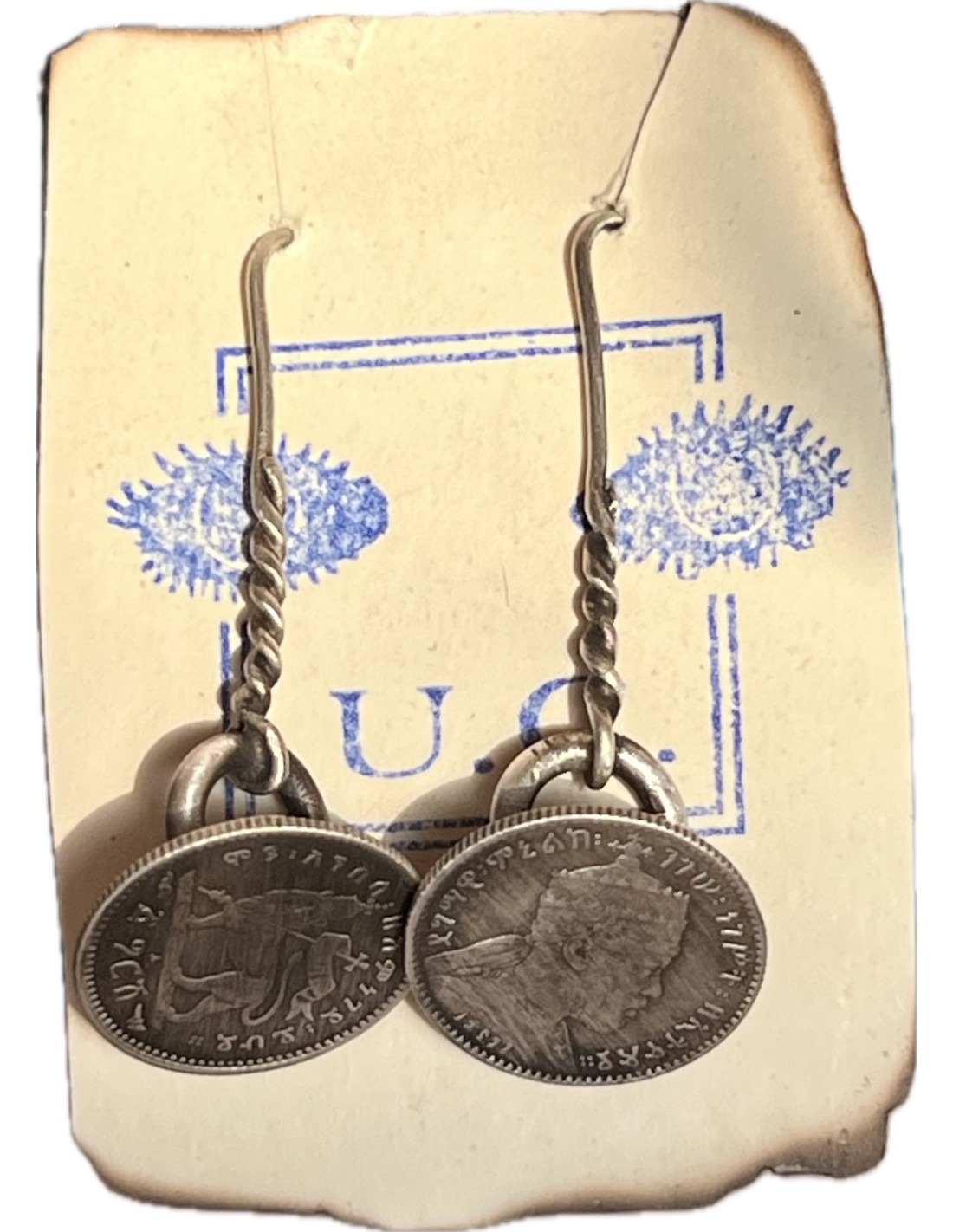 Κομψά και ιδιαίτερα σκουλαρίκια με δυο αιθιοπικά ασημένια νομίσματα του Menelik II