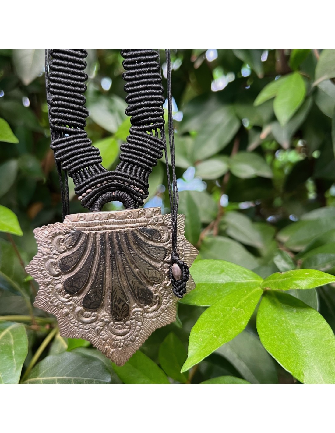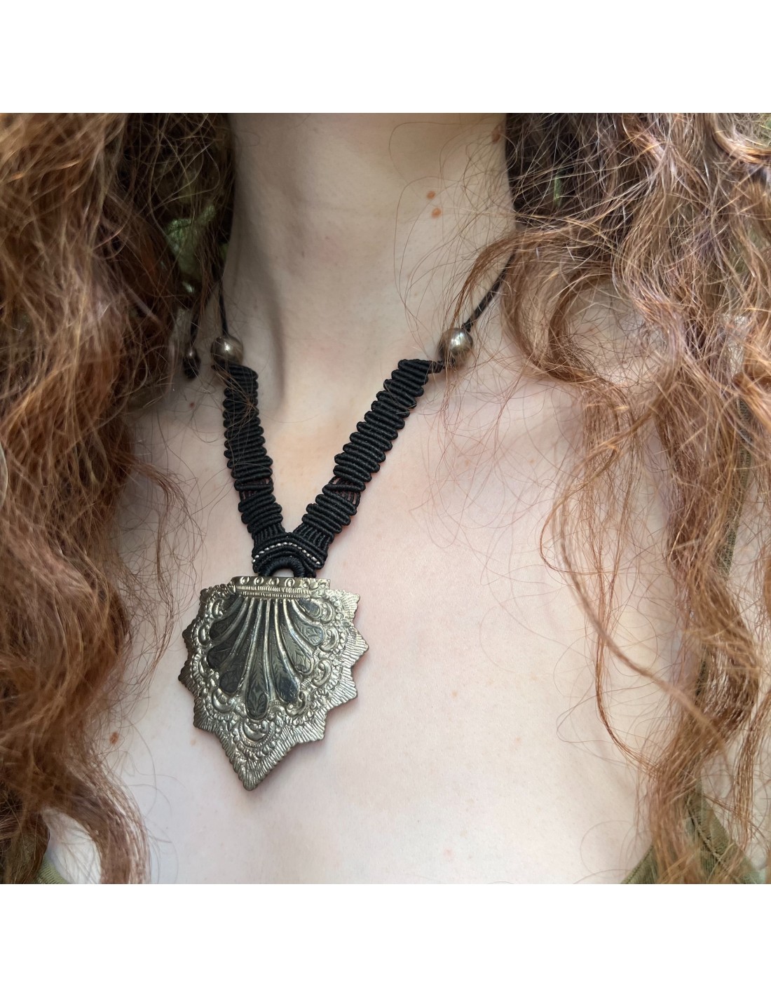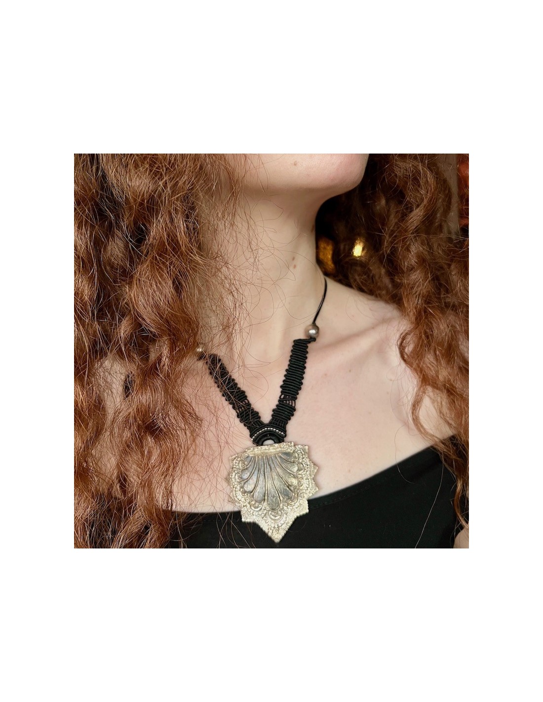 Χειροποίητο κολιέ μακραμέ με μισή ελληνική πόρπη από την Ήπειρο - στοιχείο παραδοσιακού κοσμήματος 19ου αιώνα - και παλιές χάντρες ασήμι.