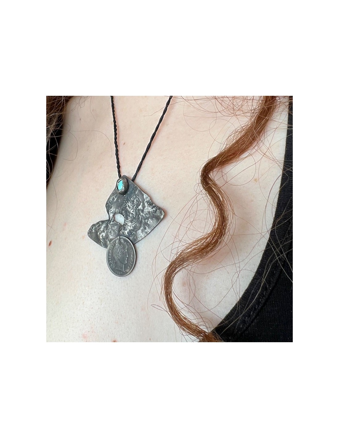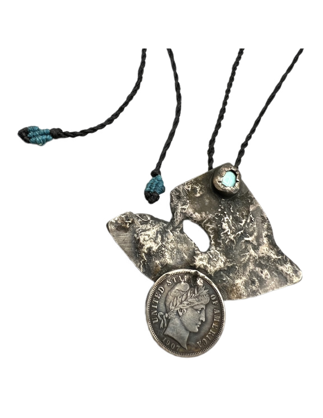 Ιδιαίτερο κρεμαστό φτιαγμένο με την τεχνική του λιωμένου ασημιού και με ασημένιο αμερικανικό νόμισμα 1 dime 1907