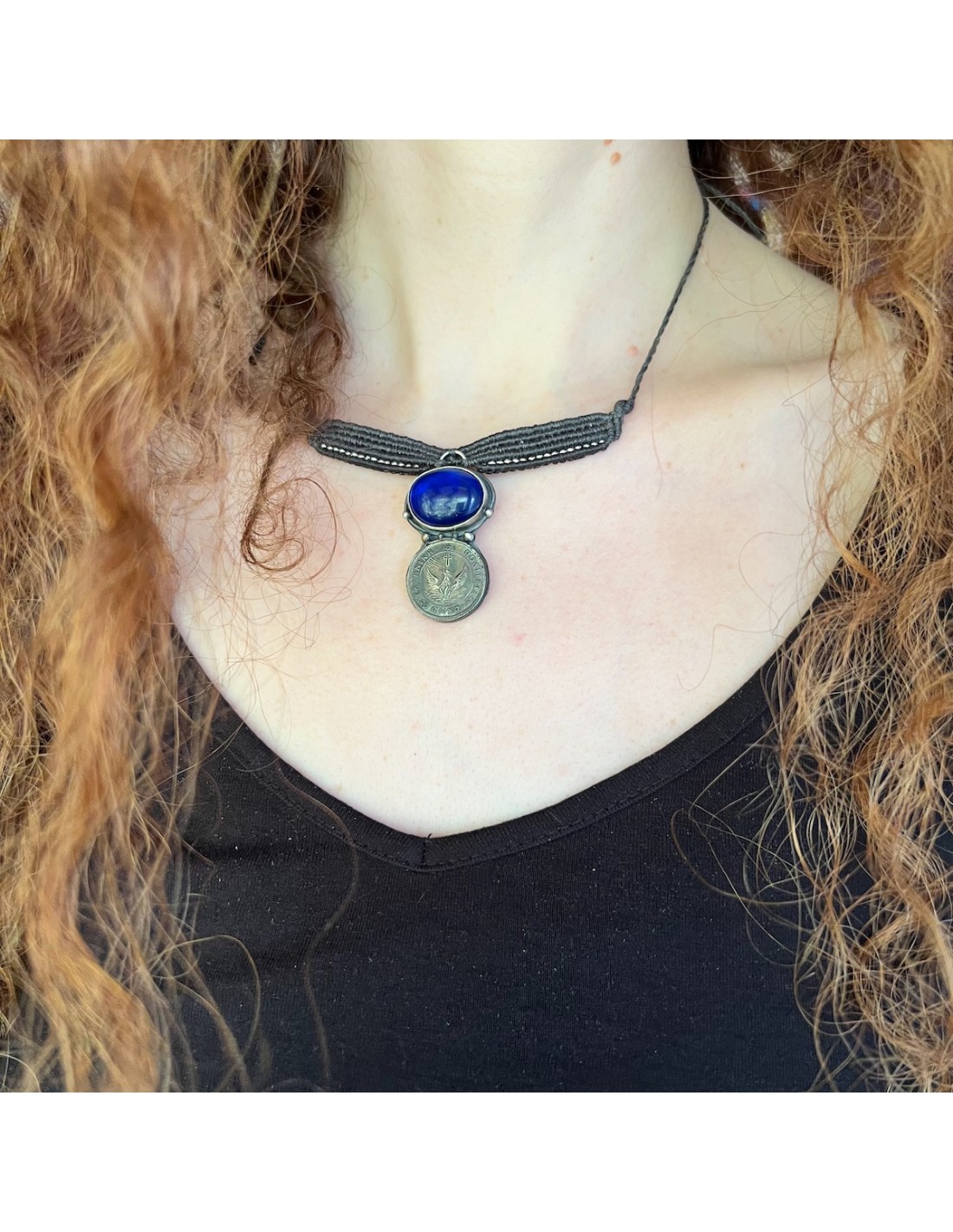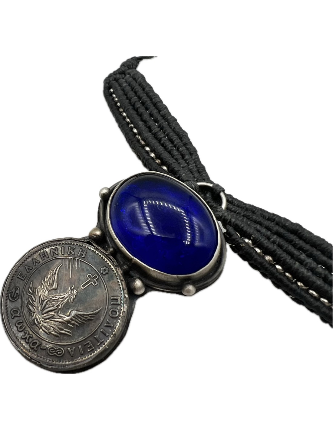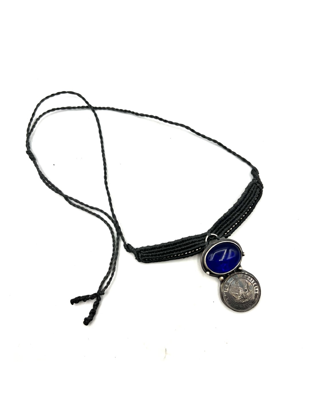 1 Φοίνικας 1828 Ασημένιο Κρεμαστό Κολιέ Μακραμέ