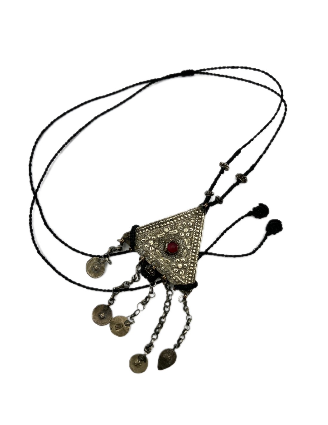 Beautiful triangular ornament of traditional jewelry with ornaments hanging by eight shaped chains, turned into a necklace.