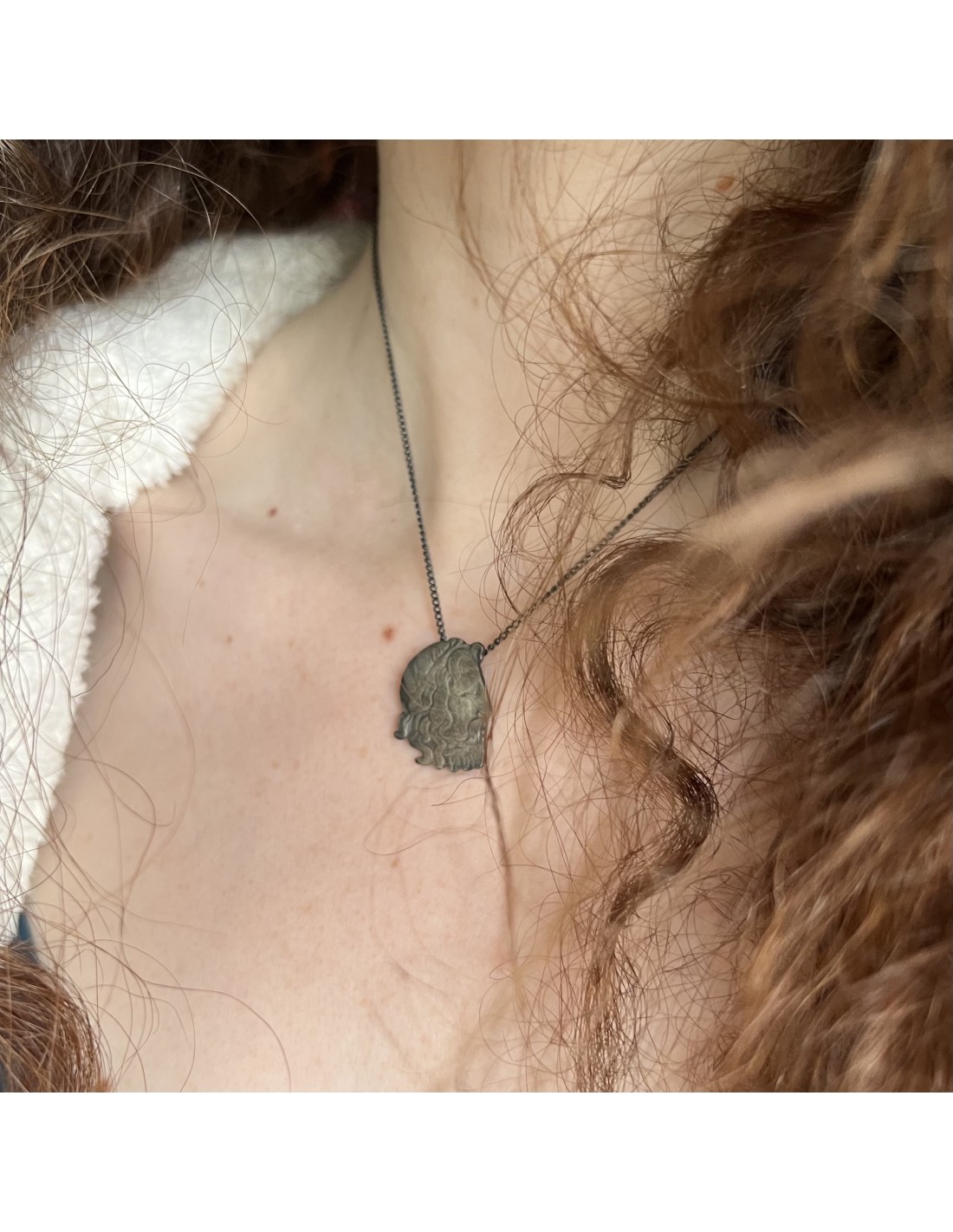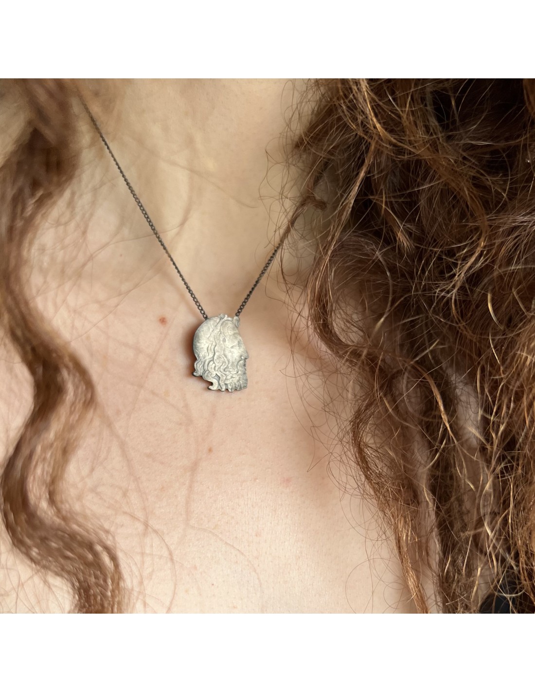 God Poseidon's face, cut off from the silver greek coin of 20 drachmas 1930